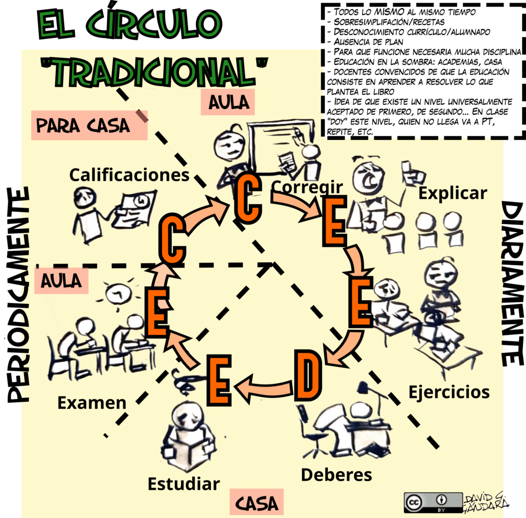 Reconozcamos que la fobia ha calado profundamente en amplios sectores del profesorado, incluso en personas que habían desarrollado una competencia digital suficiente para emplear software libre y entornos virtuales de aprendizaje; y, sobre todo, ha arrasado entre quienes confundían la transformación digital educativa (TDE) con el empleo de libros digitales y pizarras digitales interactivas (PDI) como un simulacro de la tiza, al servicio de la instrucción en bucle: atiende a la explicación, busca la página del libro, haz un resumen, contesta a los ejercicios, corrígelos, crea un mapa conceptual —con suerte—, ejecuta alguna actividad de refuerzo, estudia para el examen, contesta, consulta los errores —con mucha suerte—, refresca lo que no aprendiste, preséntate al examen de recuperación, pasa página (cf. el “círculo tradicional” según David G. Gándara, “¿Existe la innovación en educación”, 2024).